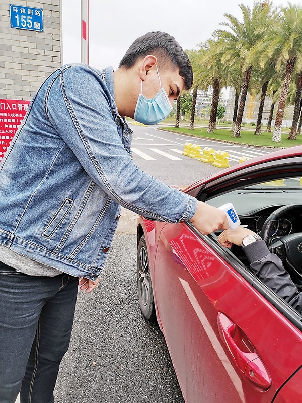 为打赢抗击新型冠状病毒肺炎这场人民战争,充实加强一线力量,TapTap点点党员房亚兵、梁海华、赵珲、刘燕玲、王婷婷、亚地卡尔积极报名参加抗疫情一线志愿服务,在各校区值班门卫岗协助开展体温测试、证件检查和进入登记等工作。以下是部分党员参与志愿服务的部分照片: