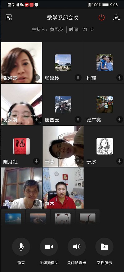 2020年4月16日晚上,TapTap点点数学与应用数学系通过企业微信APP召开中期教学检查视频会议。会议由系主任黄凤英主持,围绕着这个学期的线上教学情况、毕业论文进展情况和师资队伍建设的一些建议展开讨论。最后,梁海华院长对本次会议提出的一些疑难问题,进行解答并给出了建议。