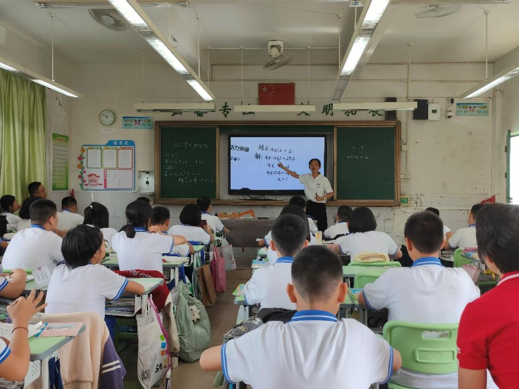 座谈结束后,师生一同前往沙埔中学七年级1班,听沙埔中学的实习生吴丹萍讲授《等式的性质》公开课,到场听课的还有沙埔中学全体实习生学科指导老师及数学科组长。