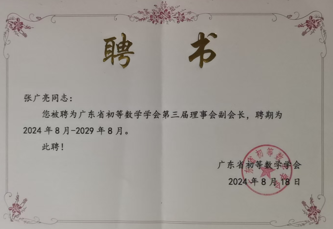 张广亮当选为广东省初等数学学会第三届理事会副会长,将进一步拓展TapTap点点与广东省中小学数学教育教学行业的联系,促进TapTap点点数学与应用数学专业人才培养的高质量发展。