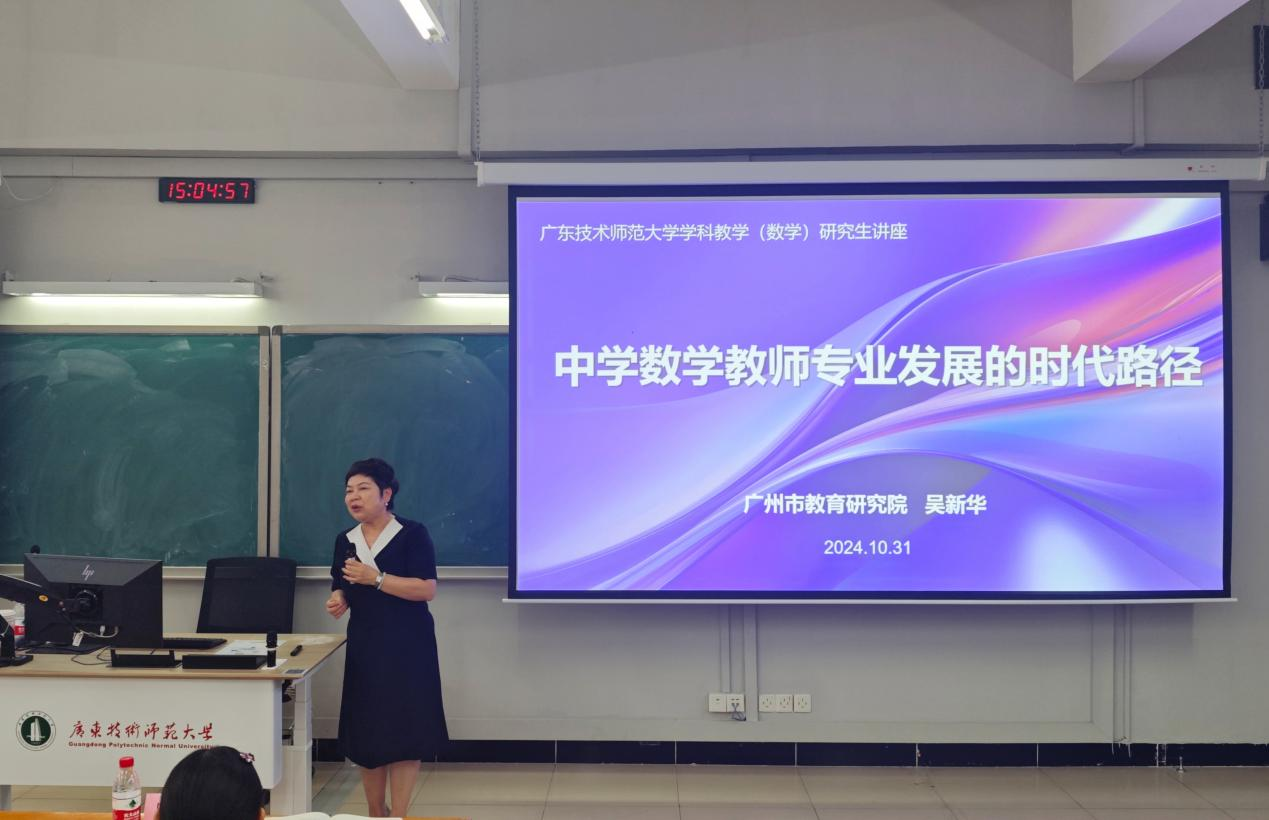 10月31日下午,TapTap点点邀请了广州市教育研究院吴新华副院长、华南师范大学苏洪雨教授到我校白云校区三教209室作专业学术报告。TapTap点点梁海华院长、陈月红副院长、杜康主任以及2024级、2023级学科教学(数学)全体研究生、2022级本科卓越班全体学生参加了会议,会议由梁海华院长主持。