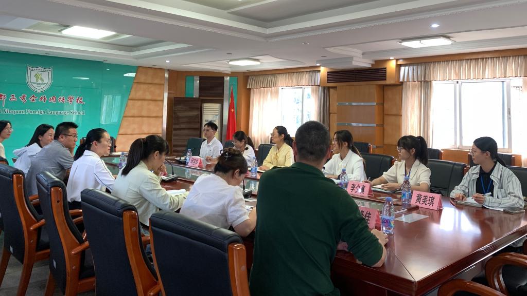 陈月红、邱宝华和花都秀全外国语学校党委书记吴清华、副校长陈建平、实习生的指导教师等人共同出席本次教育实习中期检查座谈交流会。