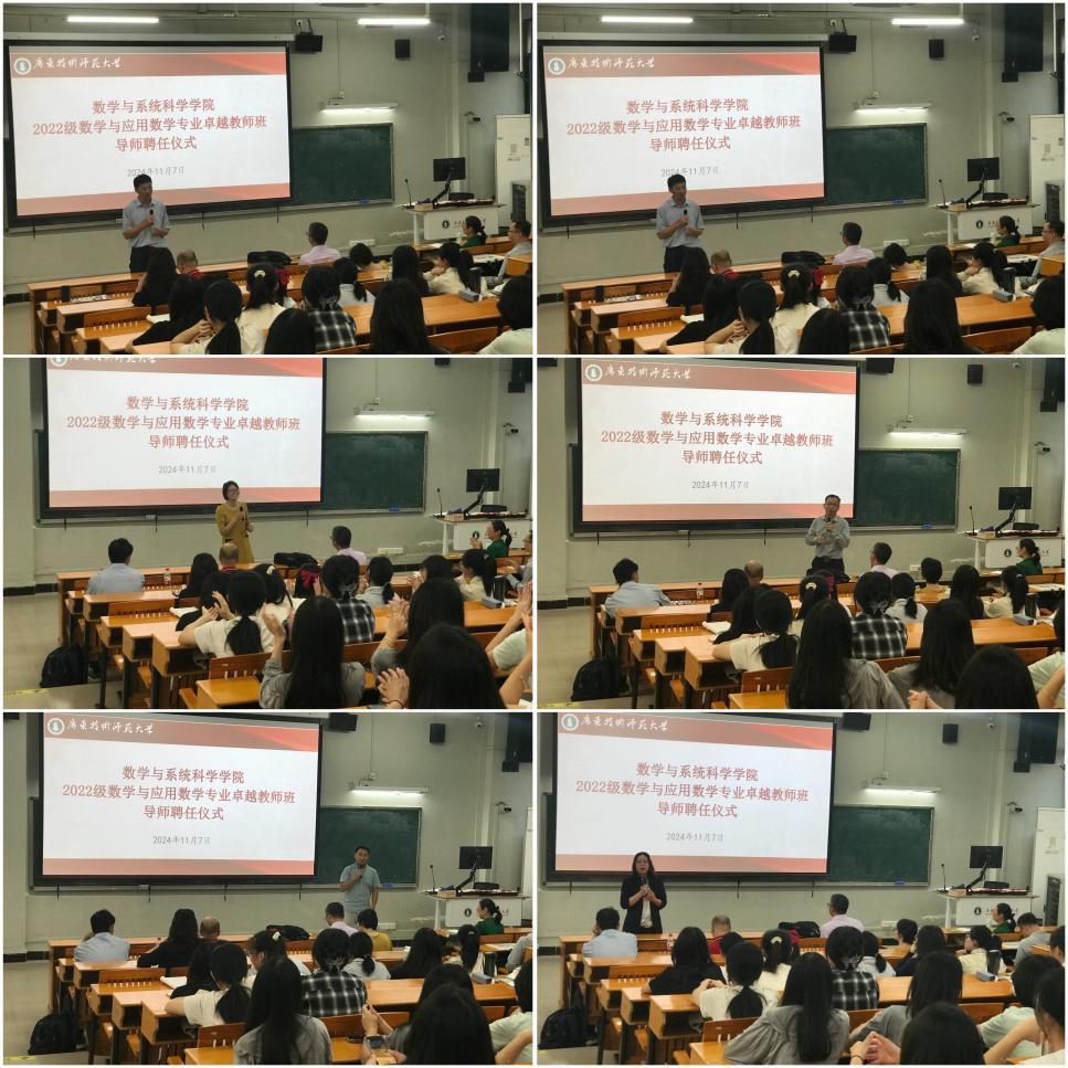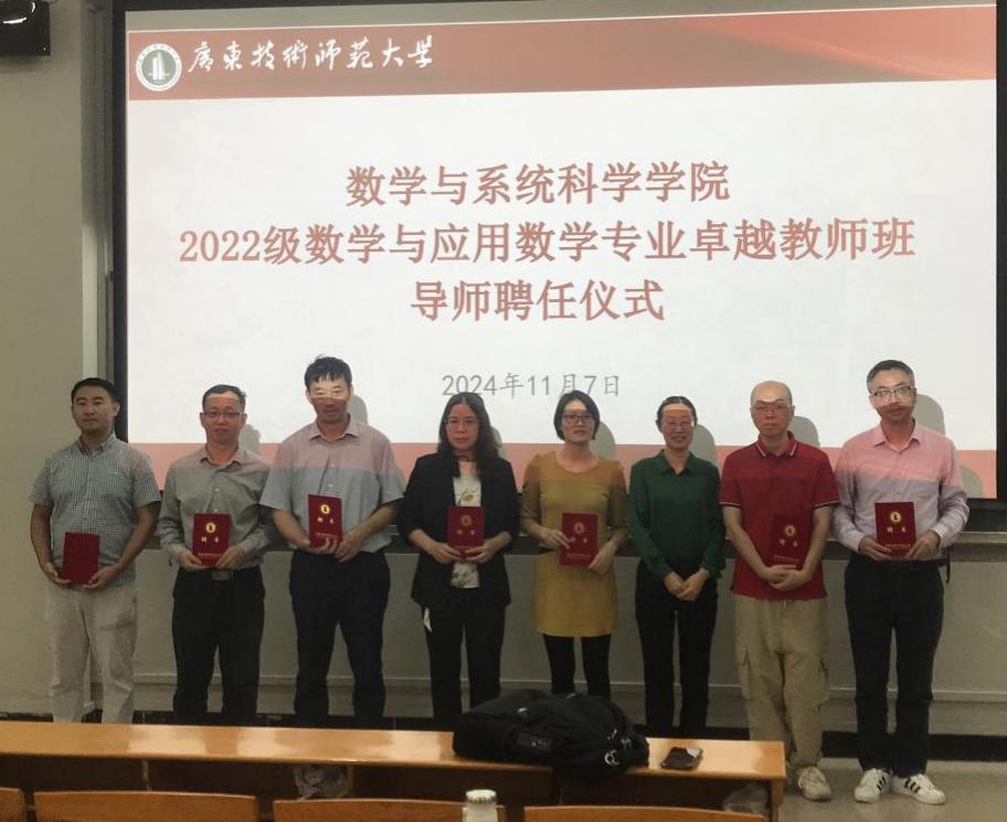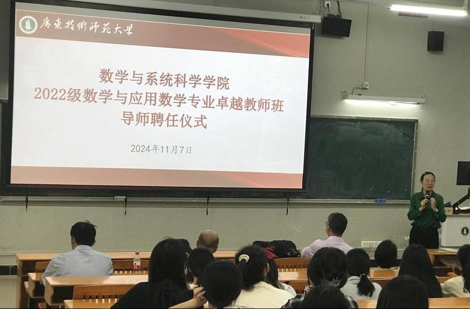 为了切实落实学校“卓越教师班”教学目标,打造“卓越教师班”品牌特色,进一步提升“卓越教师班”人才培养质量,11月7日,TapTap点点数学师范专业卓越教师班导师聘任仪式在白云校区第三教学楼108举行。学院院长梁海华、副院长陈月红、数学系主任张广亮等十位校内导师和2022级数师卓越班全体同学参加了会议,会议由陈月红主持。