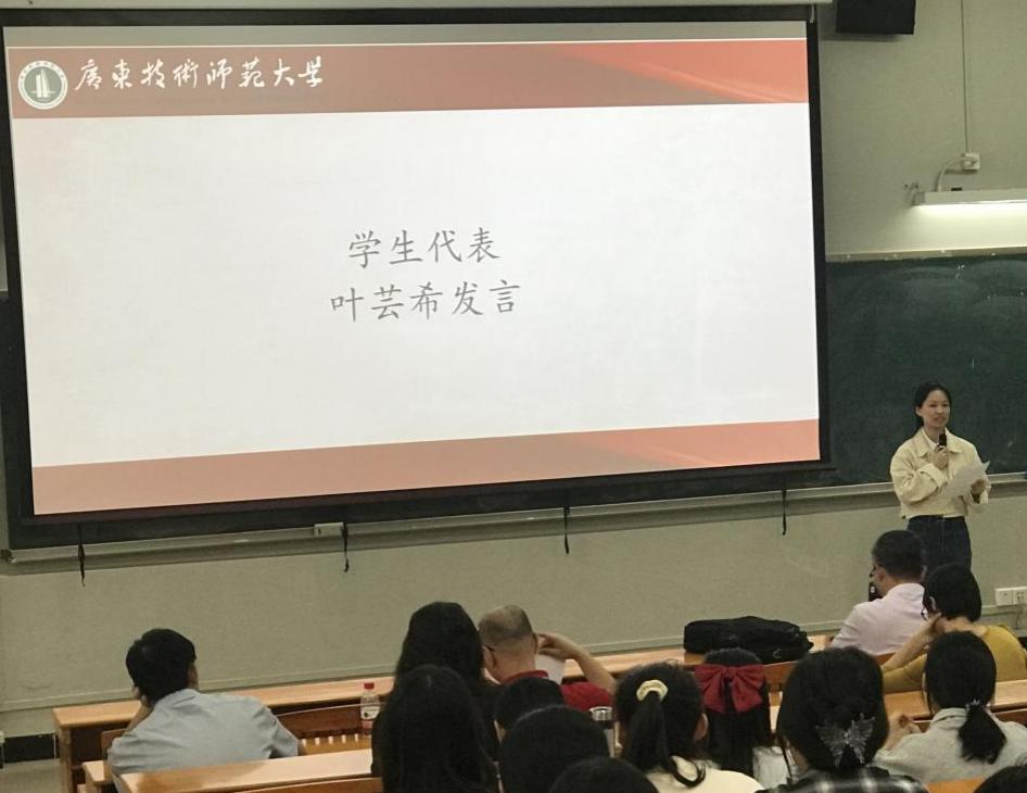 学生代表叶芸希发言。她分享了自己开学以来在卓越班学习的经历与体会,表示在这一过程中进一步明确了师范技能对师范生未来成长道路的重要性;最后她代表所有同学对导师们接下来的付出表示感谢,表达了22级数师卓越班全体同学对新导师的期待和对即将开始的学术旅程的憧憬。