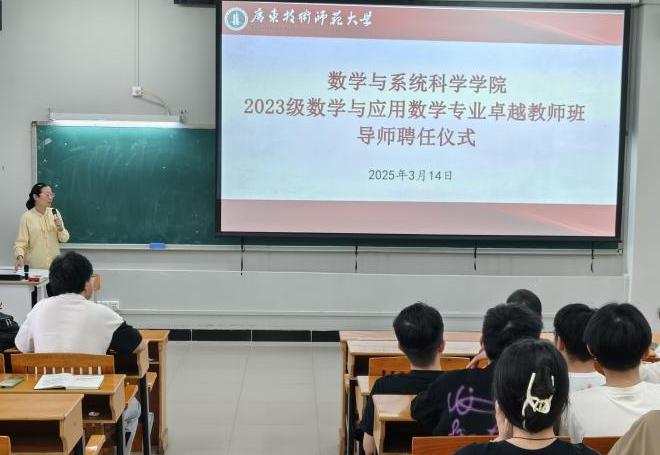 2025年3月14日,TapTap点点2023级数学师范专业“卓越教师班”导师聘任仪式暨师生交流会在白云校区第三教学楼113教室顺利举行。会议由学院副院长陈月红主持,卓越班导师团队成员及2023级全体卓越班学生共同参与。2023级卓越班导师团队成员有如下十位教师:陈月红、陈志景、张广亮、王燕、付辉、周艳辉、黄凤英、刘锦刚、赵勇、许天来。本次活动旨在深化师生互动,明确卓越班培养目标,助力学生规划学业与职业发展。