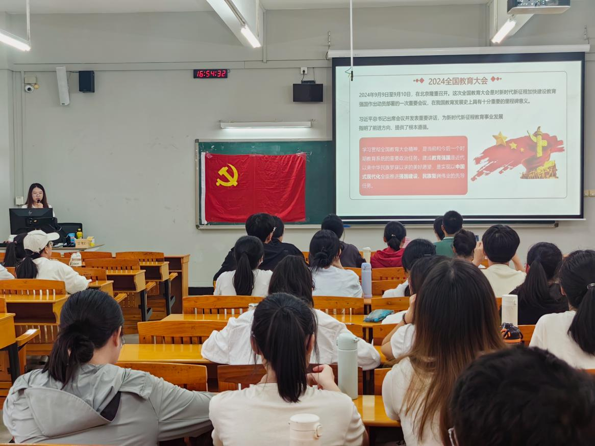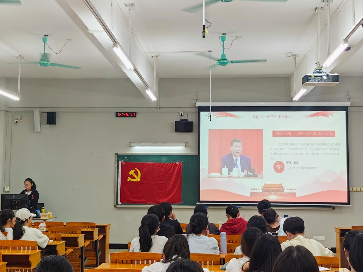 会上,全体党员共同学习贯彻党的二十届三中全会精神和习近平总书记在全国教育大会上的重要讲话精神。学生党员吴仲贤、叶焱雯作为党员代表作学习心得分享。
