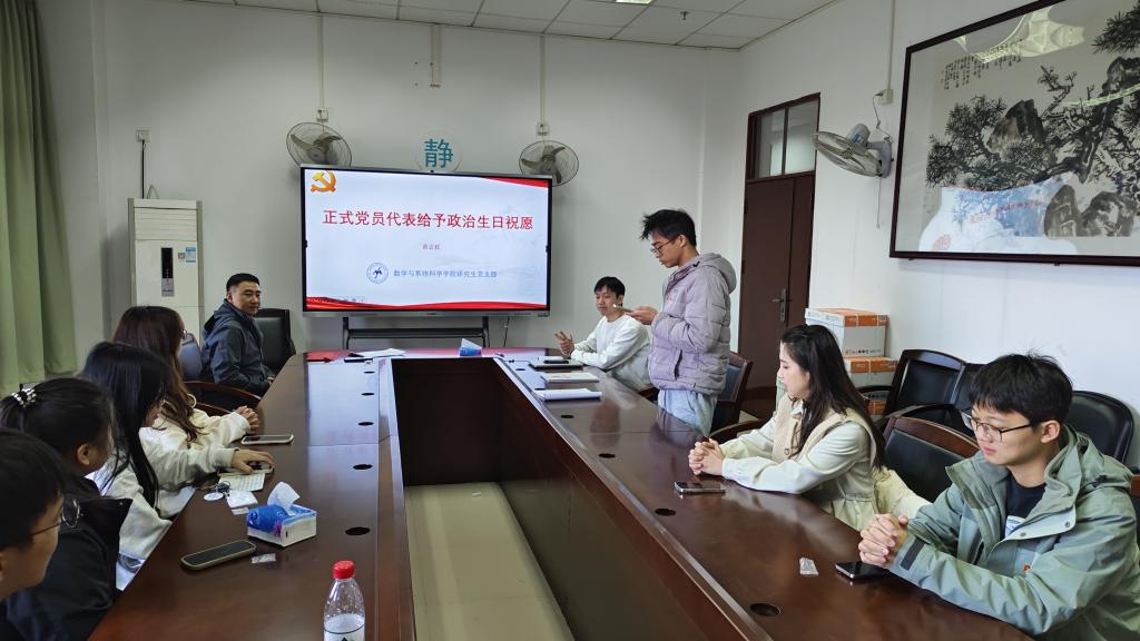 接着进行新党员入党宣誓暨“政治生日”活动。全体党员重温入党誓词,由研究生党支部书记张洪杨领誓。