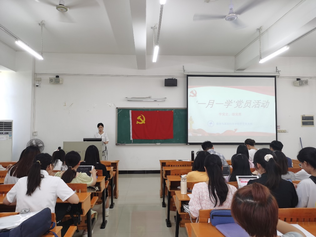 本次活动内容有学生党员讲授“学党史、颂党情”微党课、诵读《中国共产党简史》片段等。学生党员薛灿杰、温晓彤、徐杞君、袁嘉希分别以"党史上的重大会议"、“品读红色家书,牢记初心使命”、“党史记忆下的革命情”、“铁血柔情林觉民”四个主题带领大家共同学习党史。党员诵读《中国共产党简史》, 共忆往昔峥嵘岁月,学习革命先烈精神,感悟历史沉淀,汲取红色精神力量,从而进一步提高思想道德素质,使大家更明确自身的担当与责任,做好新时代的接班人。
