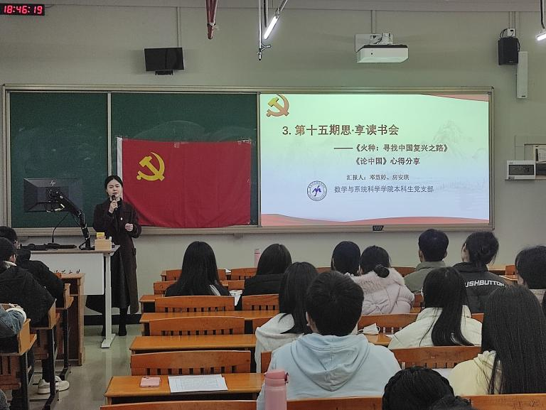 全体党员集体学习《论中国》、《火种:寻找中国复兴之路》,学生党员邓慧婷、房安琪作读书心得分享。