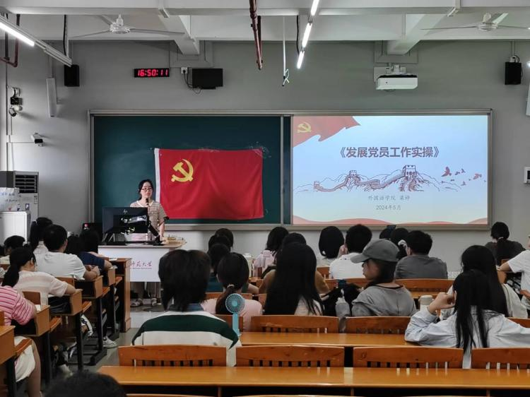 5月14日下午,全体入党积极分子和发展对象于二教601开展第五次党课培训,由外国语学院梁婷老师主讲,带领学员深入了解党员发展的基本程序和手续。