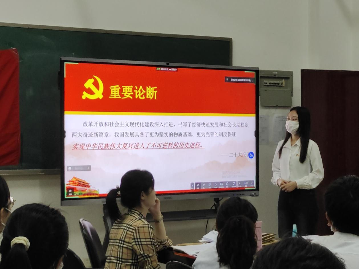 会上,学生党员刘美玲、何雅雯、萧巧游、吴文蕊、曾敏五位同志就党的二十大精神学习心得进行分享。五位同志分别从历史方位,推进健康中国建设,过去五年的工作和新时代十年的伟大变革、实施科教兴国战略以及强化现代化建设人才支撑,新时代的使命任务这几个方面内容进行分享。党员们表示,作为党员,要立志做有理想、敢担当、能吃苦、肯奋斗的新时代好青年,坚定理想信念,传承红色基因。