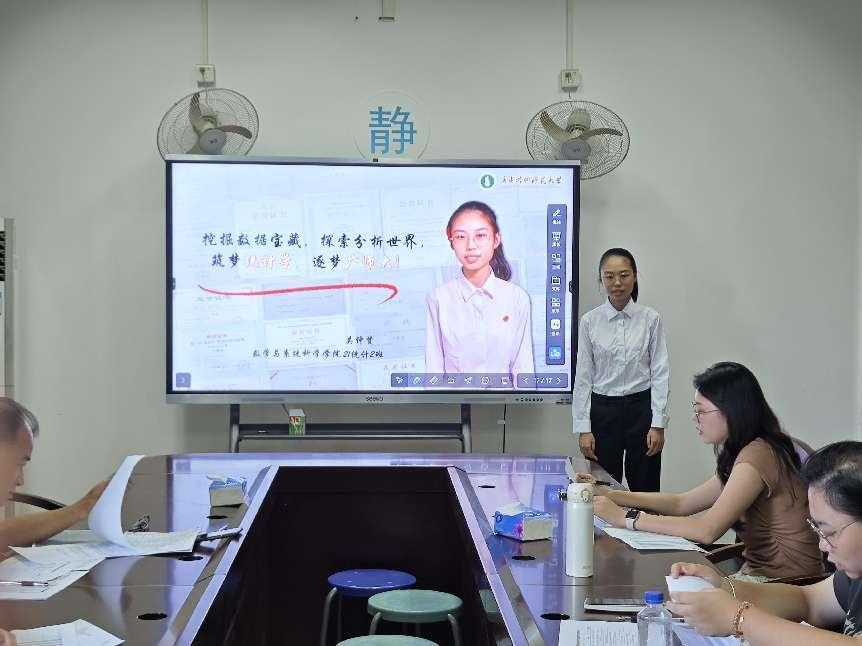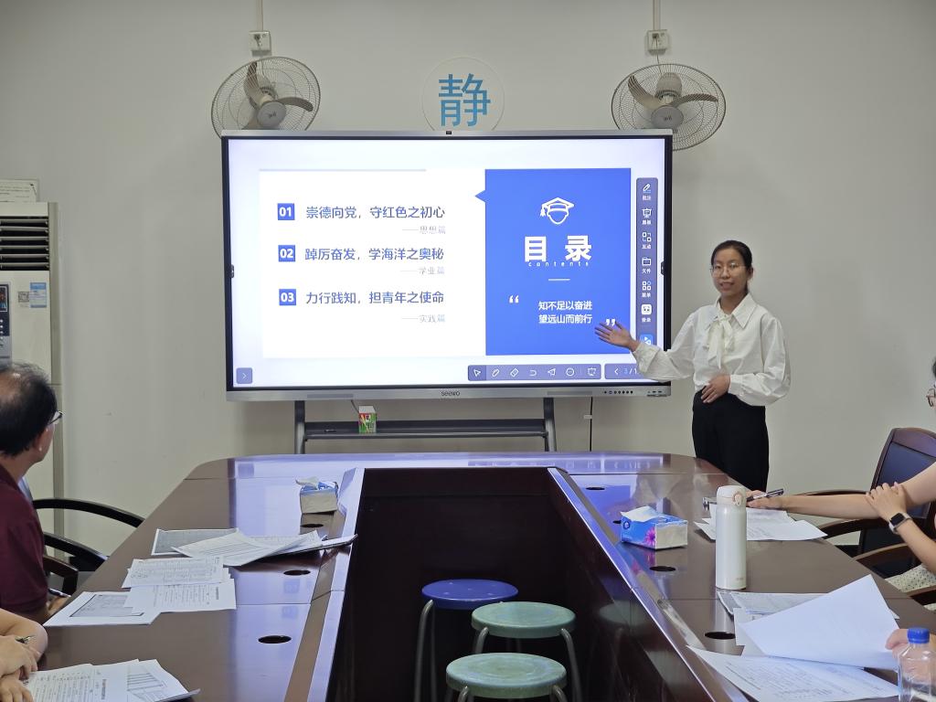 此次答辩会由辅导员陈薇羽主持,评委由学院党委副书记许国良、辅导员、班主任代表和2个学生代表组成。全院共有4名国奖候选人参加答辩会,答辩会包含个人展示、评委提问和评分三方面。答辩过程中,学生们通过PPT展示自己的学习成绩、科研成果、社会实践经历等,并对评委的提问做出回答。