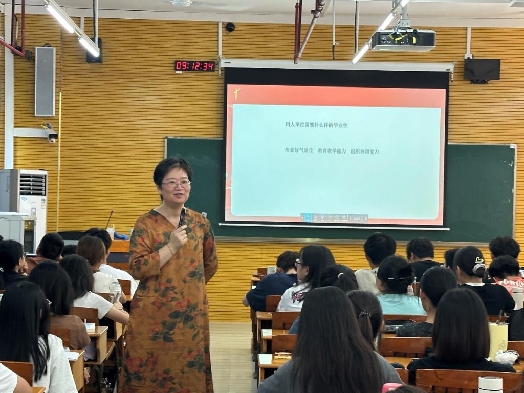讲座伊始,白雪飞书记以巴黎奥运会运动健儿们的励志故事为引,抛出师范生应做到“热爱和平、立德修身、勤奋进步”这一深刻话题,引发同学们对自身素养与未来使命的深入思考。接着,白雪飞书记强调,作为未来的教育工作者,务必时刻牢记自己的职责与使命,做到师德为先、严谨治学、关爱学生。最后,白雪飞书记通过列举教育领域的正反面案例及身边的优秀教师榜样,引导同学们认识到要在实际行动中践行“热爱和平、立德修身、勤奋进步”,勉励大家努力成长为一名有情怀、有能力的好老师。