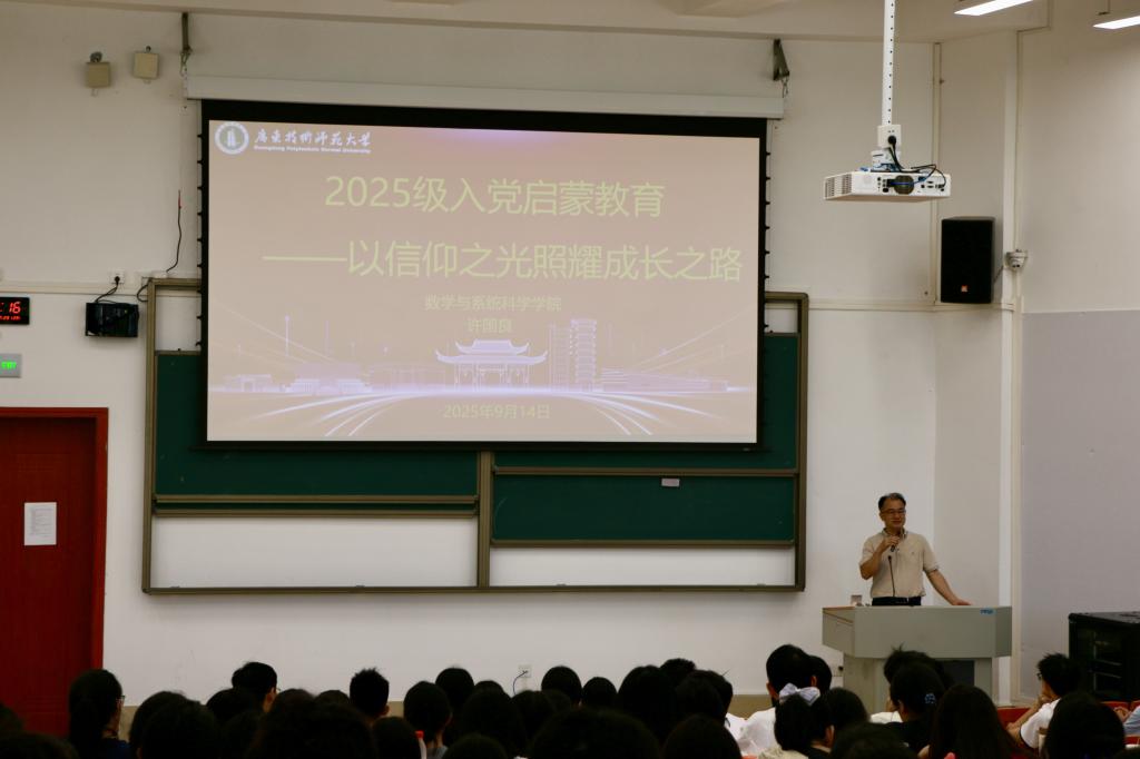 2025年9月14日,TapTap点点在河源校区博学大讲堂102室开展2025级新生入党启蒙教育活动。本次教育活动由学院党委副书记许国良主讲,主题为”以信仰之光照耀成长之路”,旨在引导新生端正入党动机、了解入党流程,坚定理想信念。