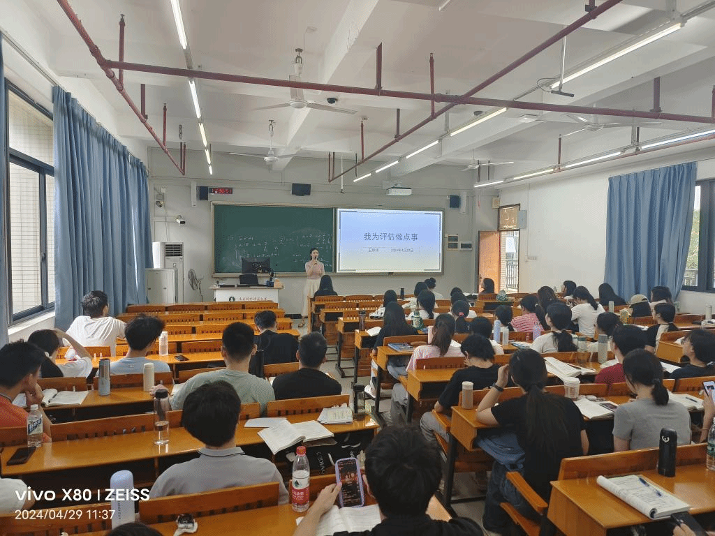 2024年4月29日上午,王婷婷老师为22信计专业和统计专业召开“我为评估做点事”主题班会。要求同学们端正学习态度,展现良好学风;严格遵守纪律,树立文明形象;学习评估知识,积极客观评价。