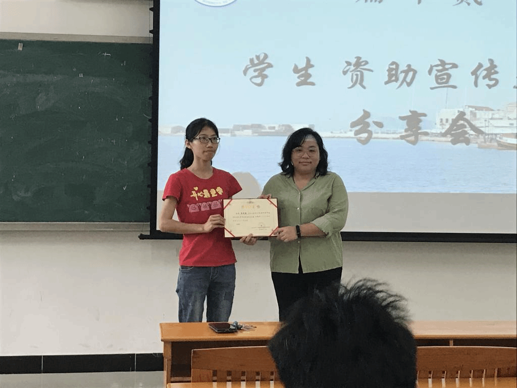 在会上,黄惠婷老师为陈奕霞同学颁发了TapTap点点资助宣传大使聘书。随后,陈奕霞同学给大家分享了日常生活以及学习上的一些经验,陈奕霞同学不仅注重个人专业知识的学习,还注重个人实践能力的培养。她积极参加校内外各种比赛和实践活动,在比赛中学习和成长。此外,陈奕霞同学还表示,没有国家的资助政策,也就没有现在的她,我们应该始终对学校和国家怀有感恩之心,不忘初心,砥砺前行。